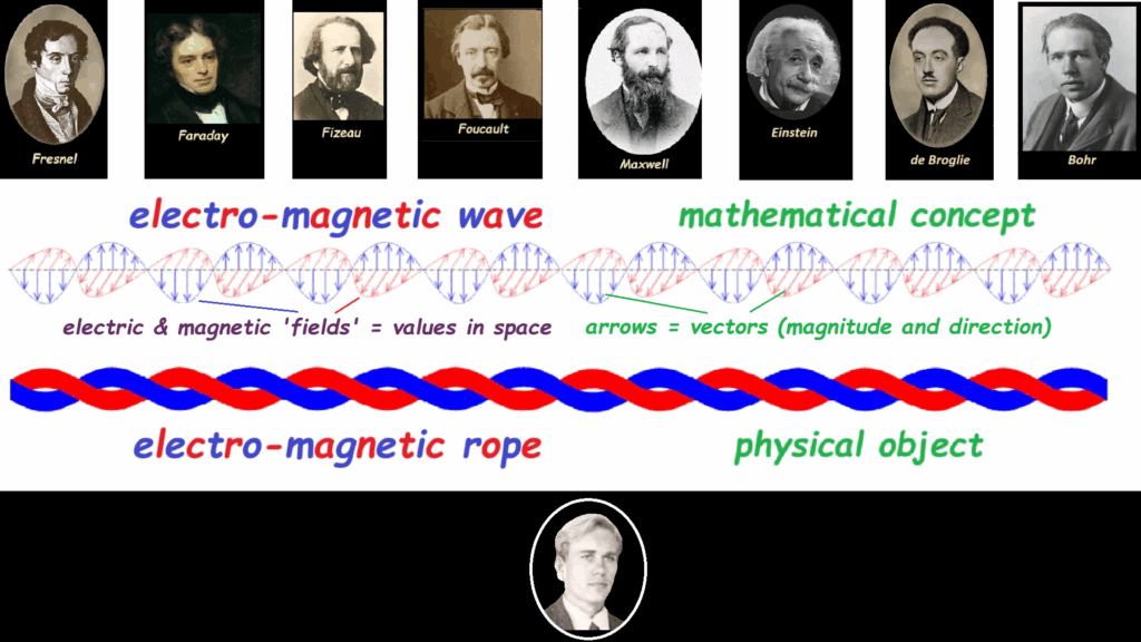 We replace the EM wave with a physical two-strand rope. The EM rope explains